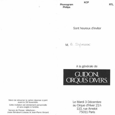 (Paris, 26 Novembre au 28 Décembre 1985)